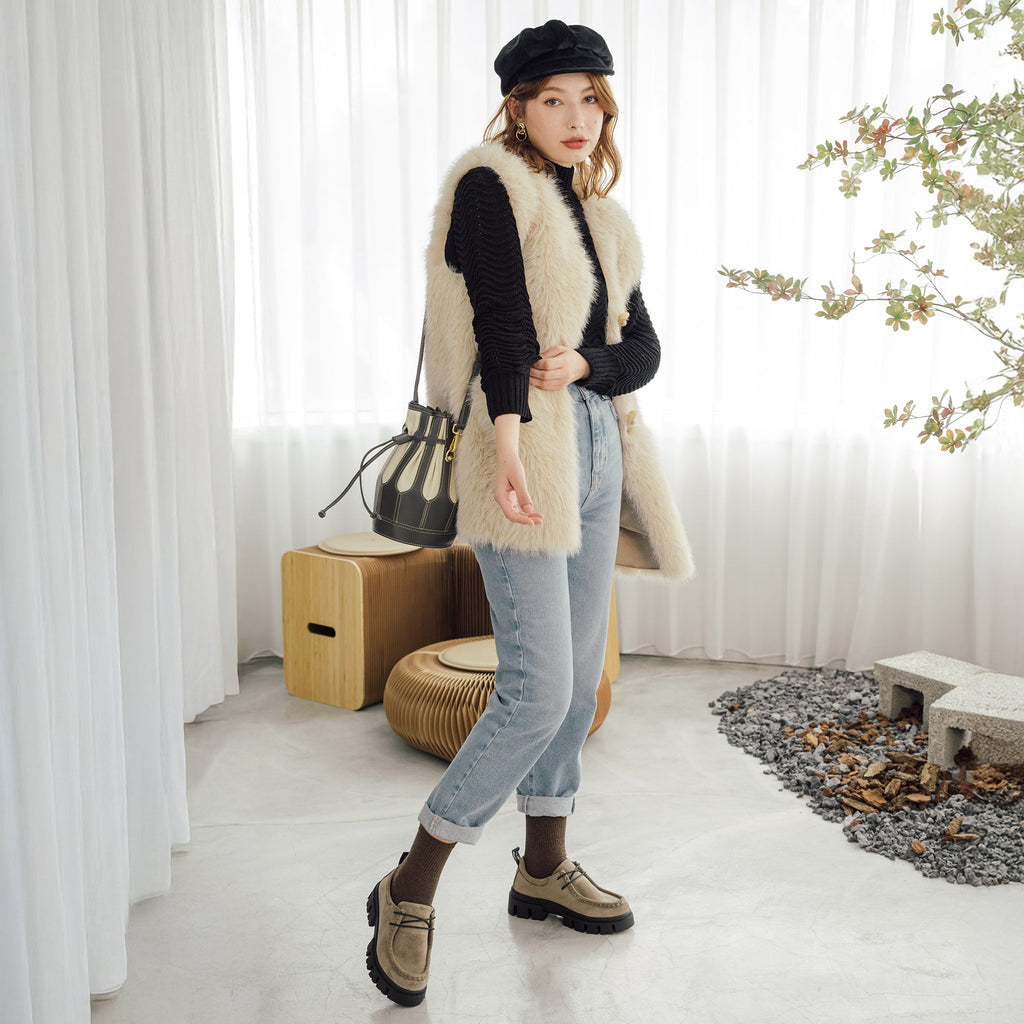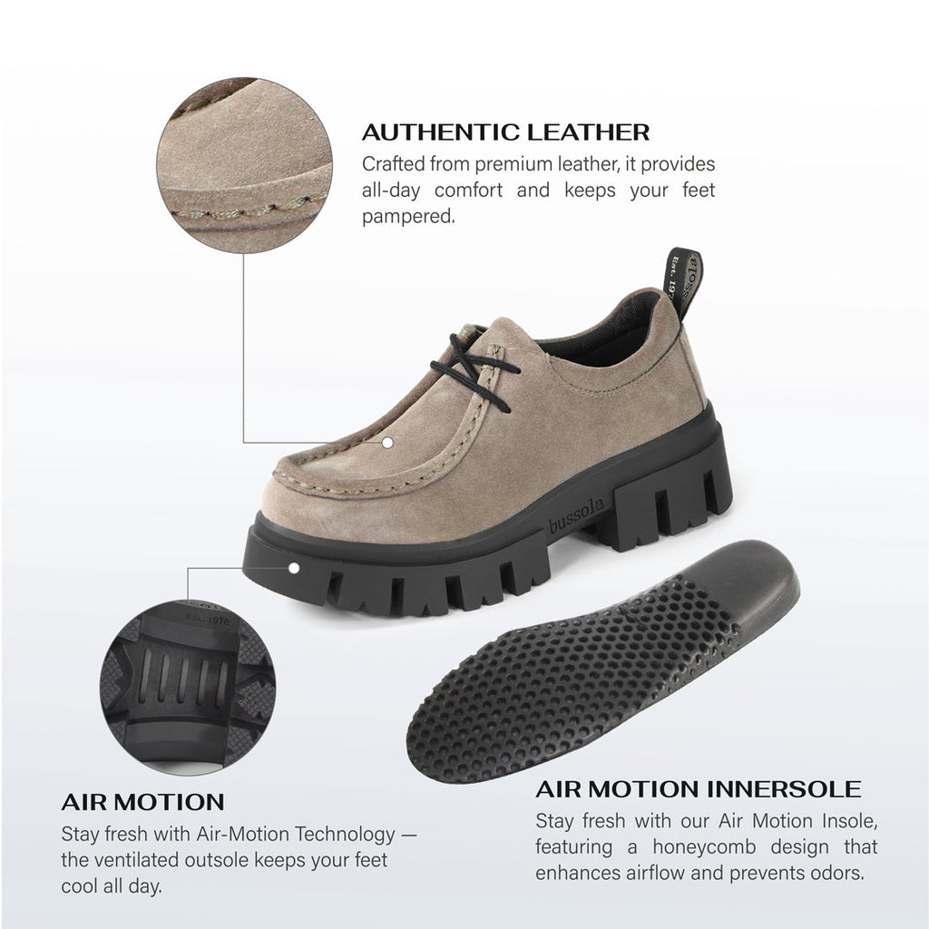 ● Elevated Heritage: Classic moccasin stitching meets a platform sole for a heritage-inspired design with a contemporary twist.