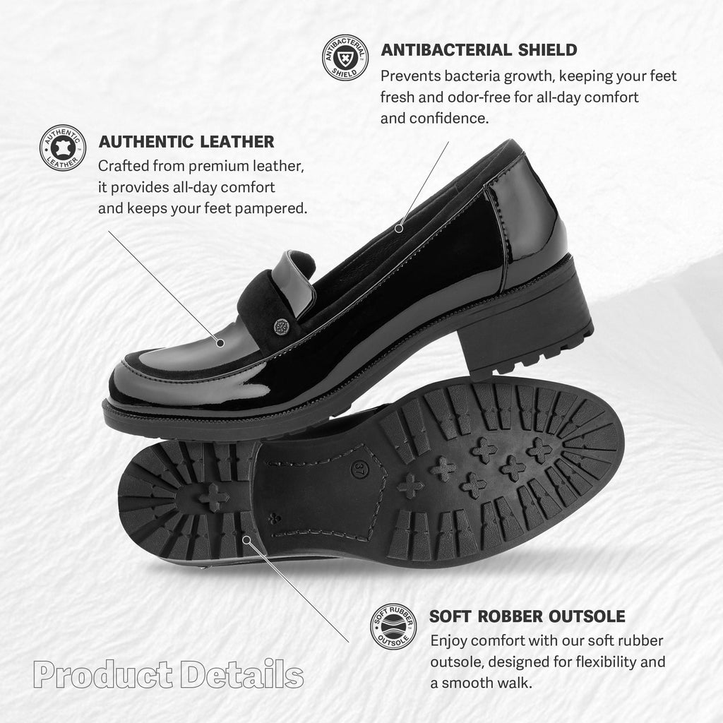 All-day comfort with a polished finish — Alba Glossy Block-Heel Loafers keep you steady, supported, and effortlessly put-together. These timeless loafers offer soft support and balanced lift that help you look refined without sacrificing comfort.