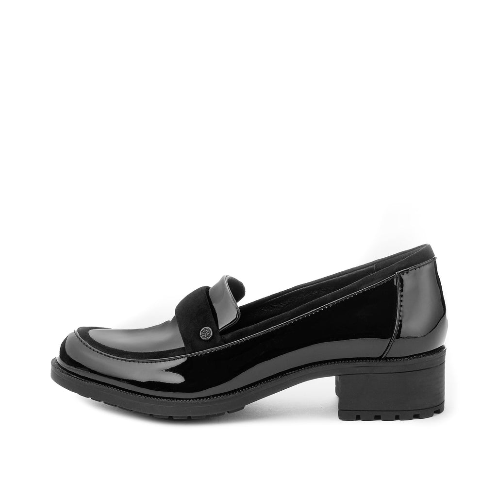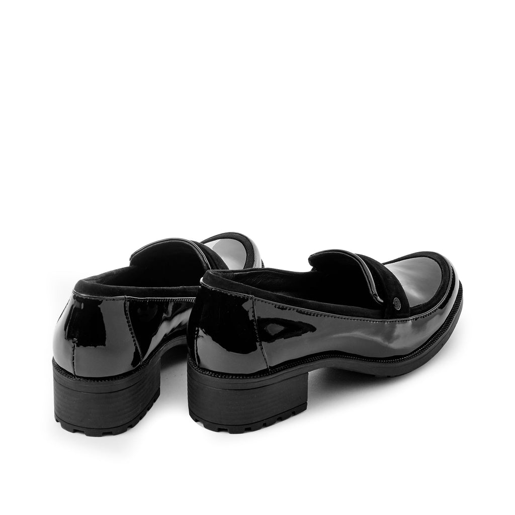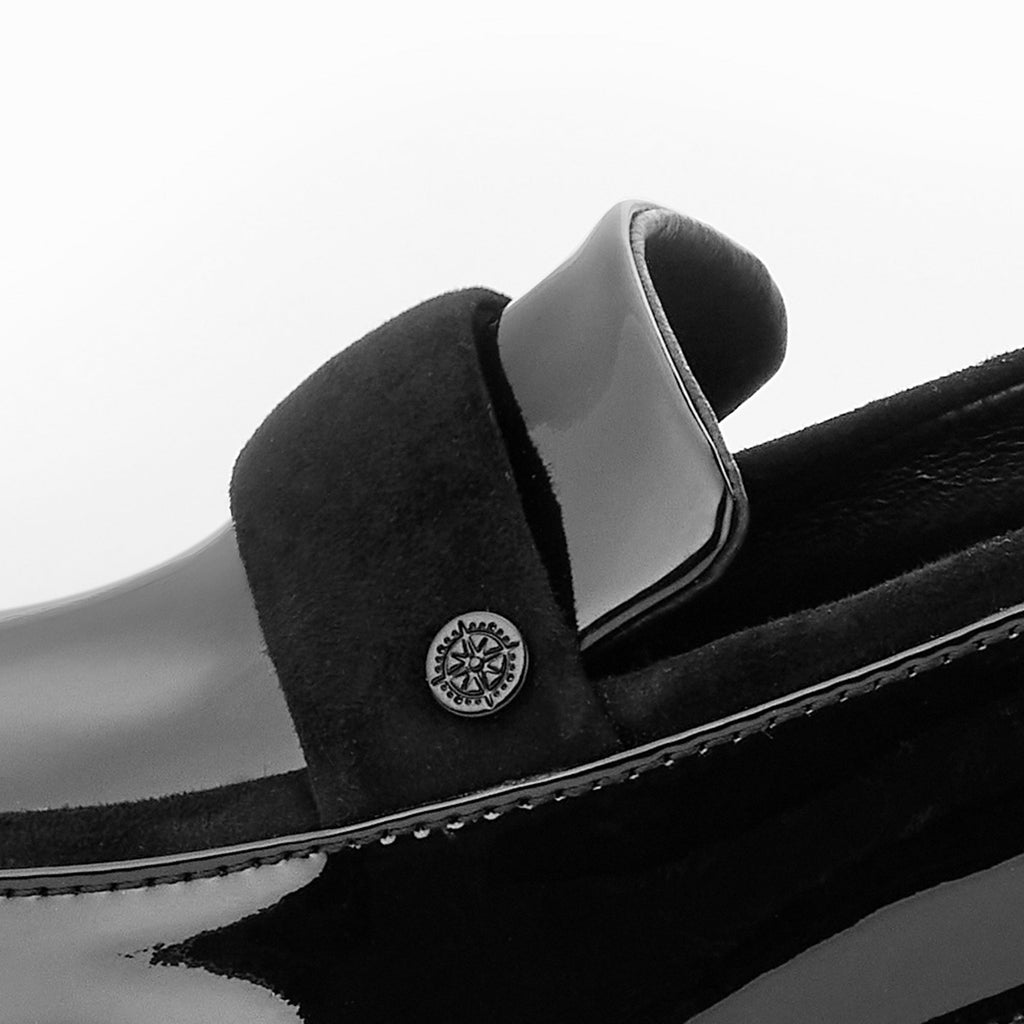 Alba Glossy Block-Heel Loafers (Vernice Black)