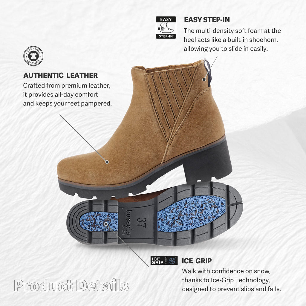 ● Slip-Proof Confidence: Equipped with bussola’s exclusive ice-grip outsole, they provide reliable traction on snow, helping every step feel secure.