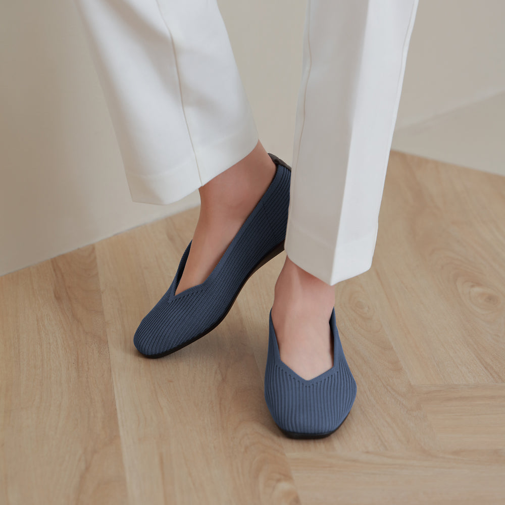 Classic charm meets modern comfort in Vicenza Knit Ballet Flats — designed with a snug knit upper, cushioned multi-density insole, and soft PU outsole. With its rounded square toe and flattering V-cut design, it offers a sleek silhouette that transitions effortlessly from workday polish to evening ease.
